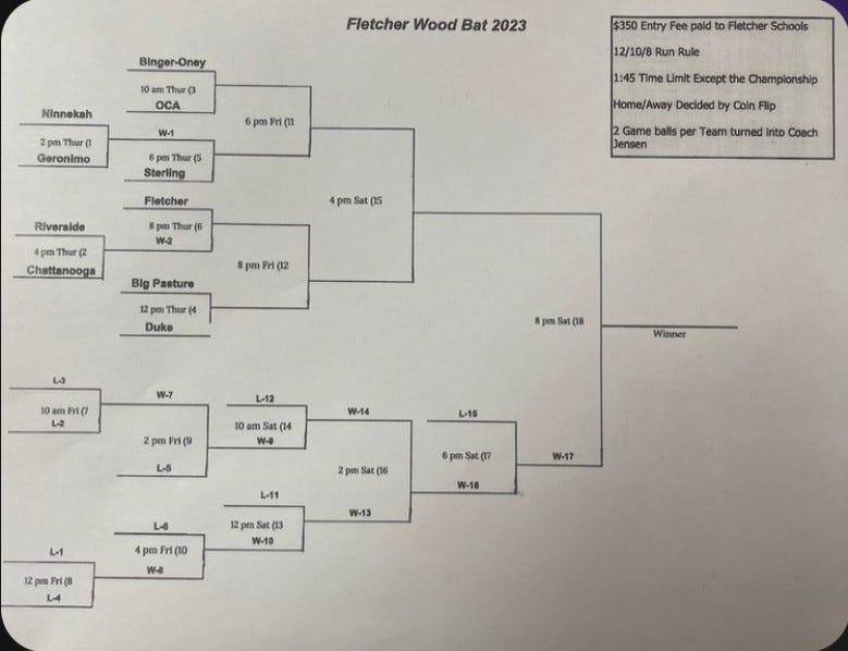 When there’s a plethora of tournaments going on, you may have to do something that makes yours stand out. That’s what the people at Fletcher High School are doing as they are hosting a wood bat tournament this weekend.