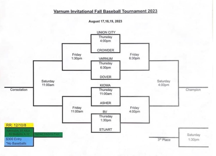Three different teams entered already have 5 wins on the young season: Union City (5-0), Stuart (5-0), and the host school Varnum (5-1). Better yet, these 3 teams are set up on the bracket where none of them would play each other until at least the semi finals.