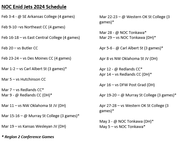 There are at total of 11 junior colleges that have baseball programs in the state of Oklahoma. The all play in Region 2 of the NJCAA (National Junior College Athletic Association) with 5 of them in Division 1 and the other 6 in Division 2.