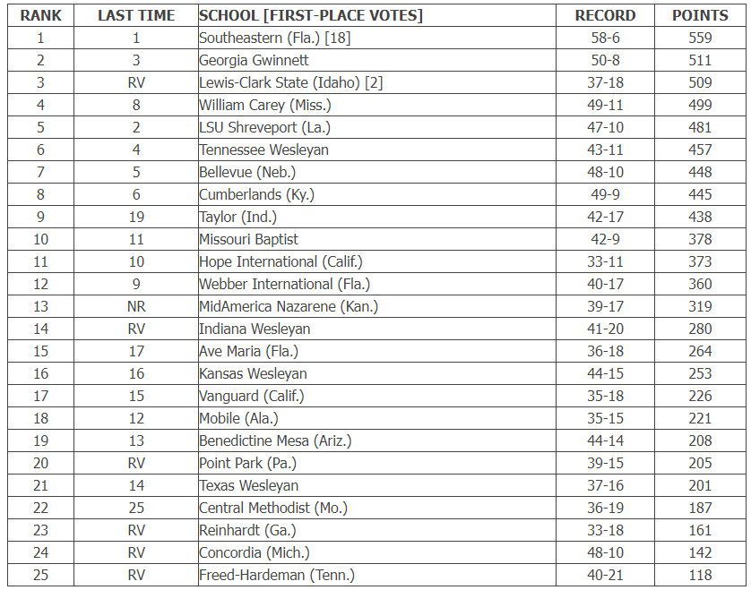 First, let’s take a look back at how the games in last week’s “What to Watch” went down. Starting with the matchup of the week, Oklahoma Wesleyan vs Southeastern (FL), the Eagles looked to finish their early season road trip to Florida with a big resume boost over the top-ranked team in the country. However, Southeastern’s offense was too much for Wesleyan to overcome, falling to the Fire in three straight games. Moving to the top Sooner State showdown of the week, we tabbed a doubleheader between Connors State and Murray State as a big-time series. Although it resulted in a 2-0 sweep by the Cowboys, we got extra innings in game one and had a tie game going into the bottom of the fifth in game two.