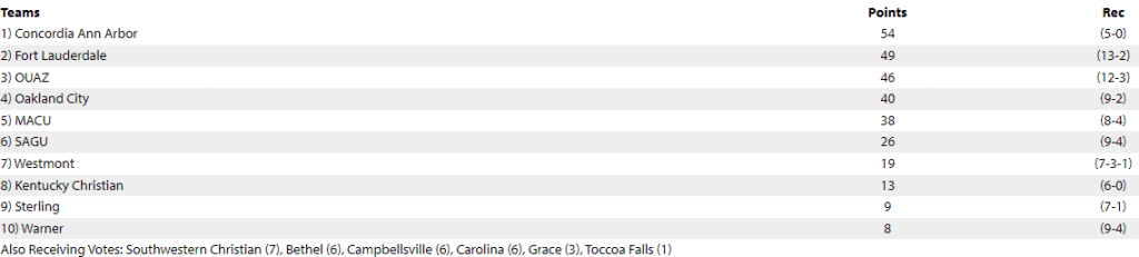We will do these on Wednesdays since the D2 and NAIA rankings aren’t posted until then.