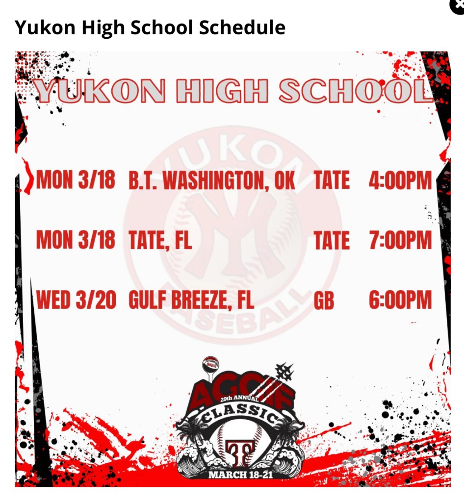 TuesMon: Yukon 2 Tate, FL 5- Wed: Yukon 9 Gulf Breeze, FL 1