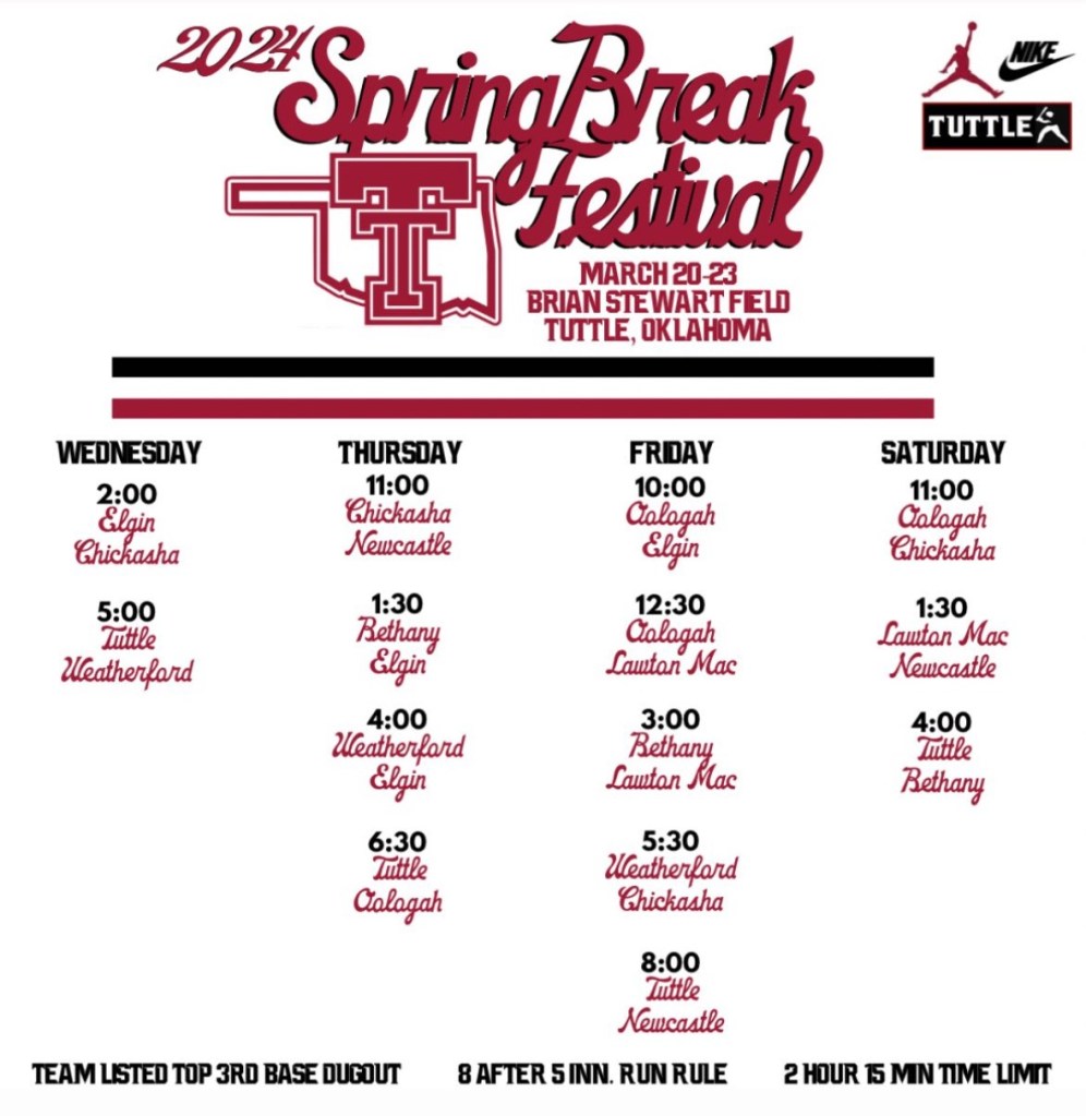 11:00: Chickasha Newcastle1:30: Bethany Elgin4:00: Weatherford Elgin6:30: Tuttle Oologah