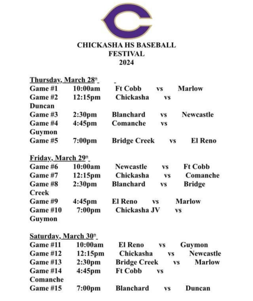 One of the events we be watching is the Chickasha Baseball Festival that starts on Thursday. This event will have some of the best teams from the southwest part of Oklahoma playing in it.