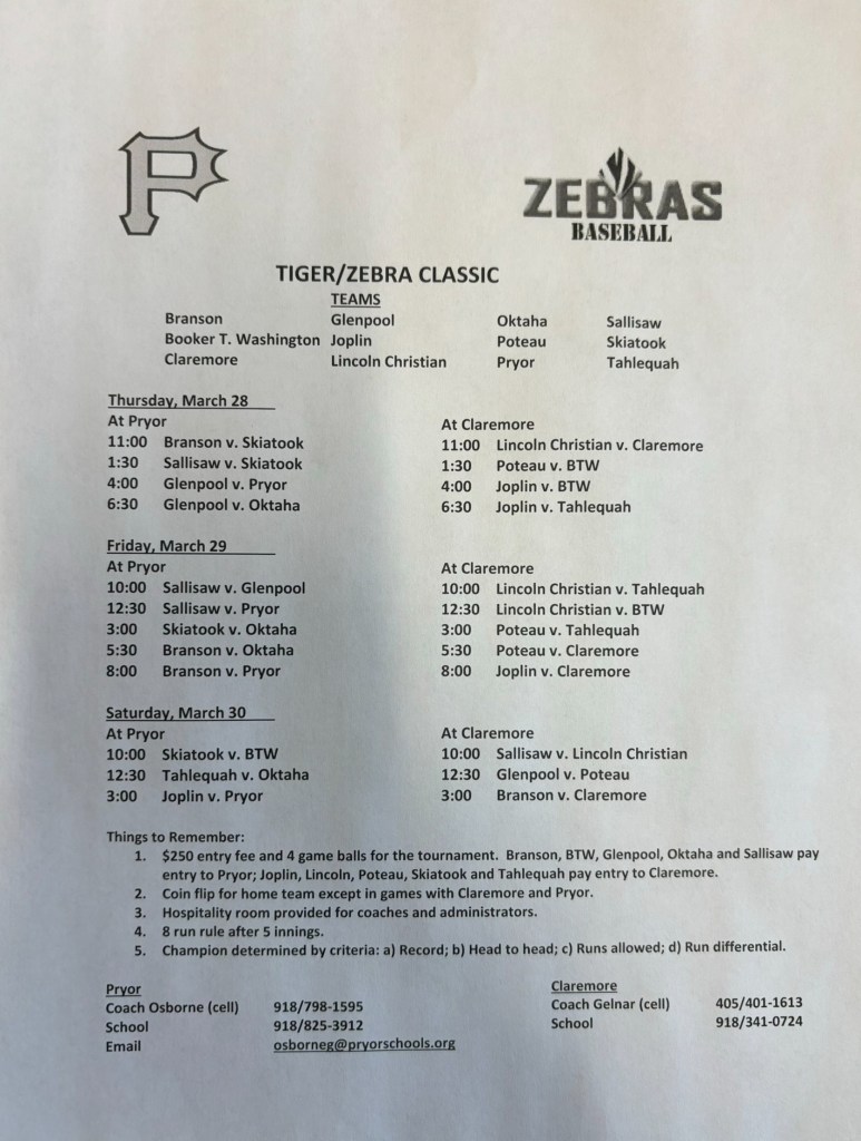 One of the events we will be focusing on is the Tiger/Zebra Classic. This event will be played at Pryor High School (Tigers) and Claremore High School (Zebras).