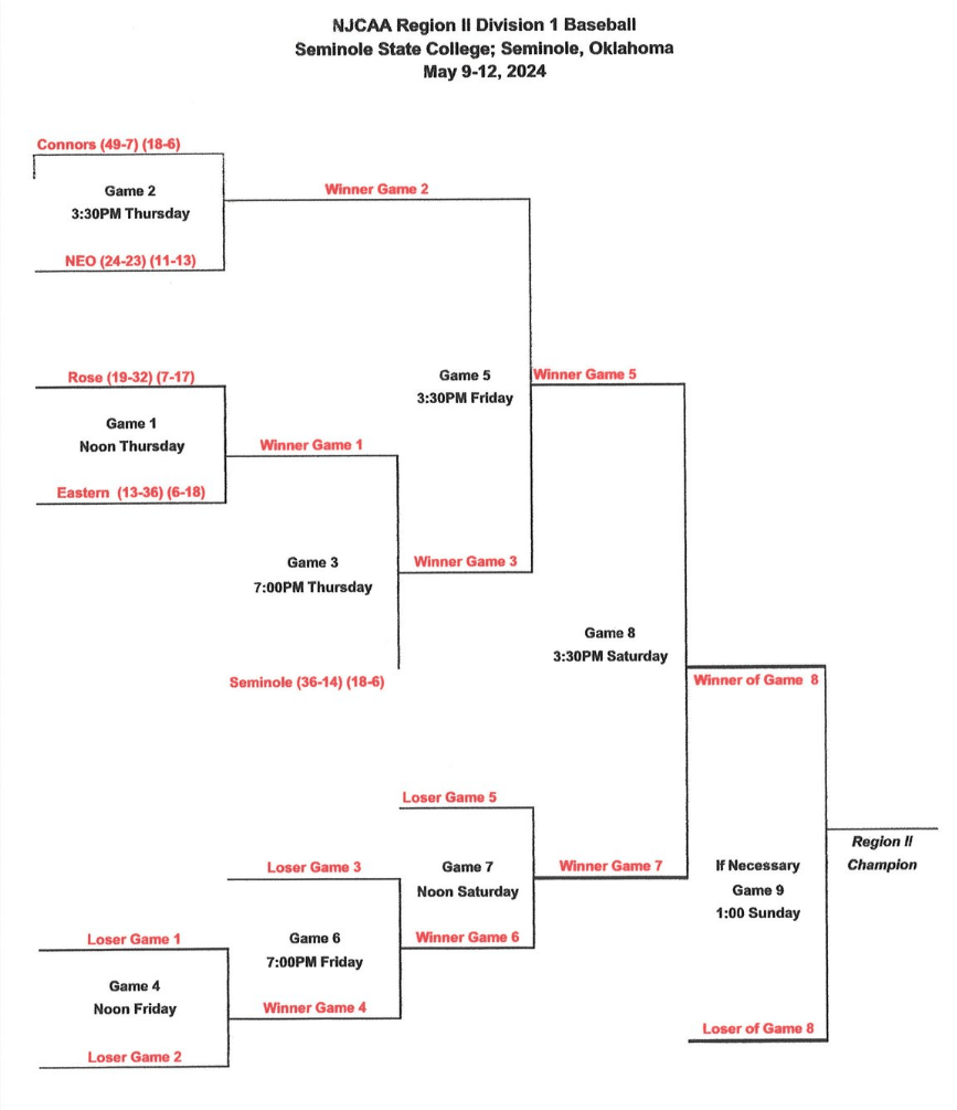 Teams: Seminole State, Connors State, NEO, Rose State, Eastern