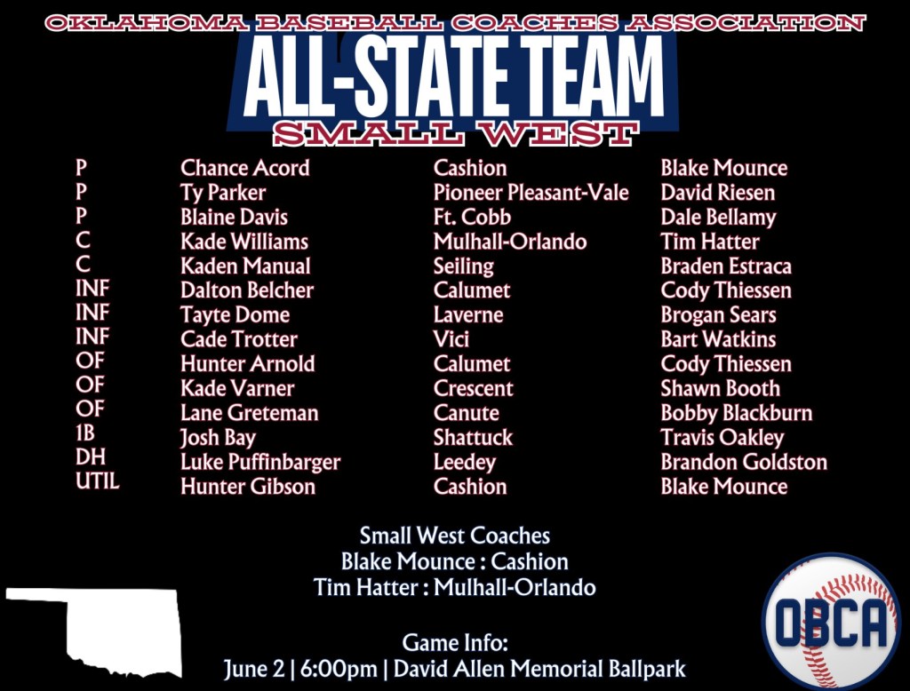 Late Wednesday night, the Oklahoma Baseball Coaches Association made public All-State teams for small classes (B-2A), middle classes (3A-4A), and large classes (5A-6A).