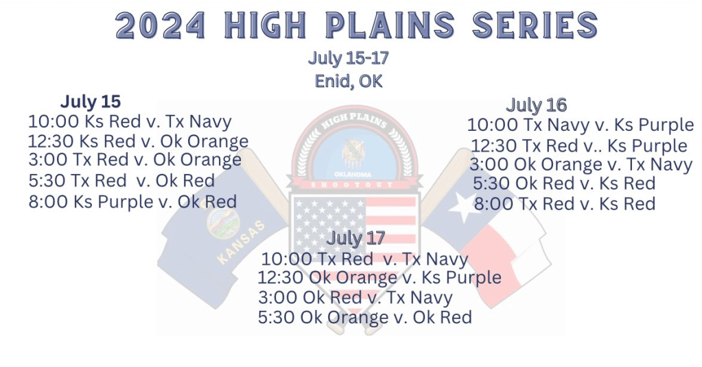 Next up is the High Plains Shootout putting some of the best teams from Oklahoma, Texas, and Kansas. The event will be played over three days (July 15-17) at (you guessed it) David Allen Ballpark in Enid, OK.
