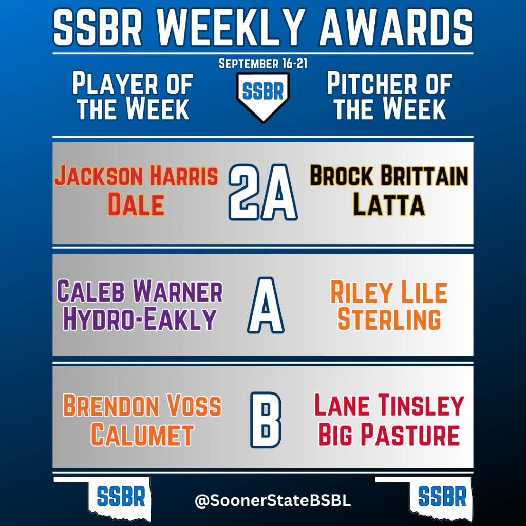 Each week we send out nomination forms to the coaches to complete and we will choose a position player and pitcher from each class (2A, A, B) for the weekly award. The winners will receive something from SSBR for their achievement and each player/pitcher nominated will be listed in our weekly post.