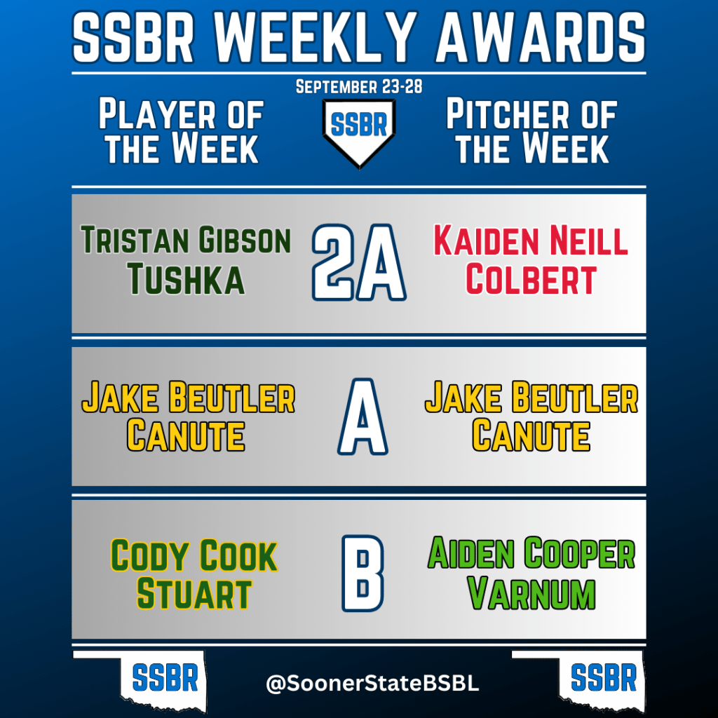 Each week we send out nomination forms to the coaches to complete and we will choose a position player and pitcher from each class (2A, A, B) for the weekly award. The winners will receive something from SSBR for their achievement and each player/pitcher nominated will be listed in our weekly post.