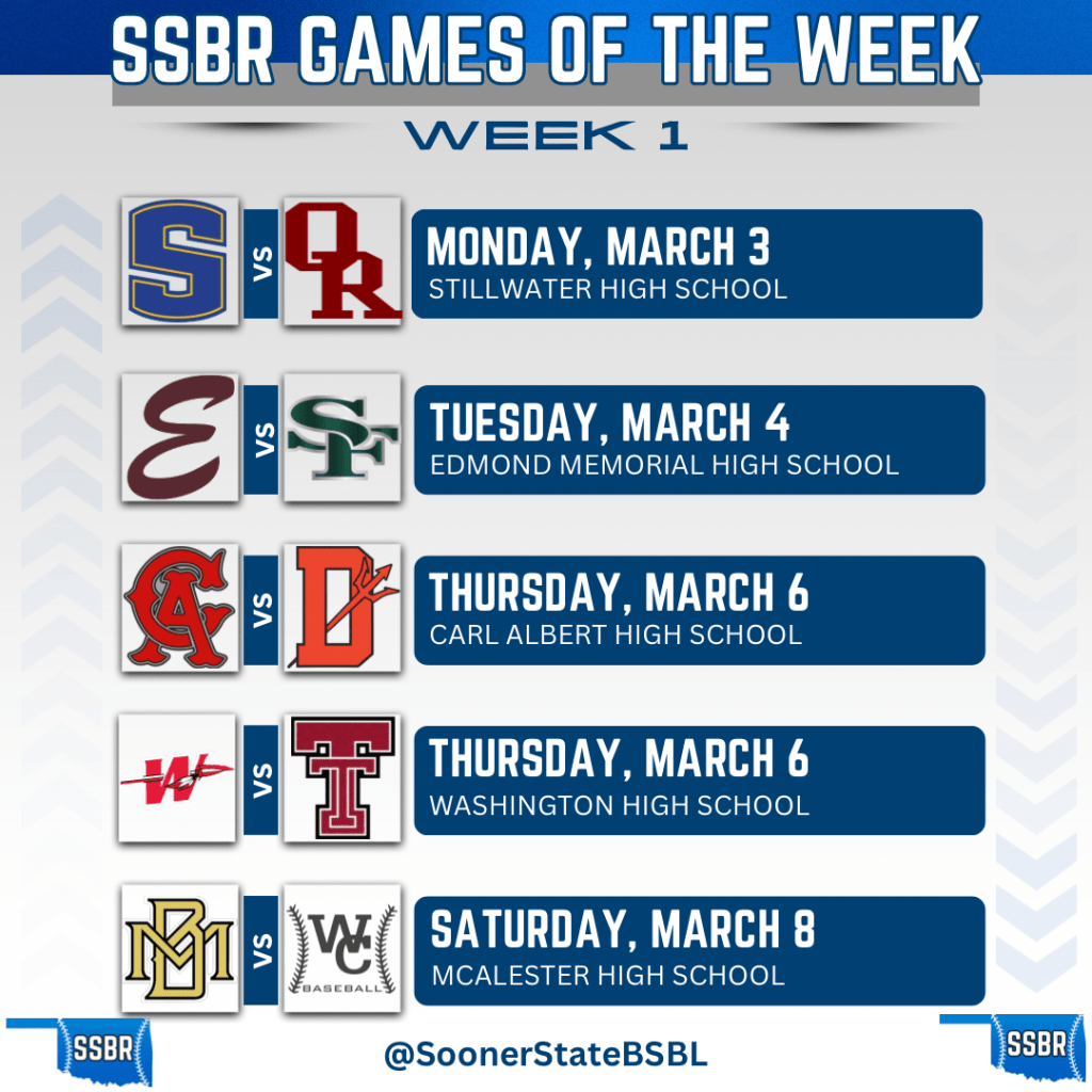SSBR will take a look at the week ahead and pick five games that aren’t part of a district series or a festival/tournament that pique our interest. These will be our “Games of the Week.” When these games go final, we will specifically provide a score and stats from the game on our social media accounts.