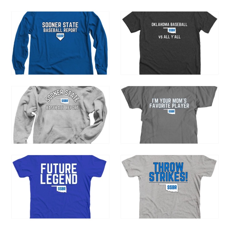 Do you like the content that Sooner State Baseball Report provides? Show your support by purchasing an official SSBR shirt or hoodie at our online store at the link below.