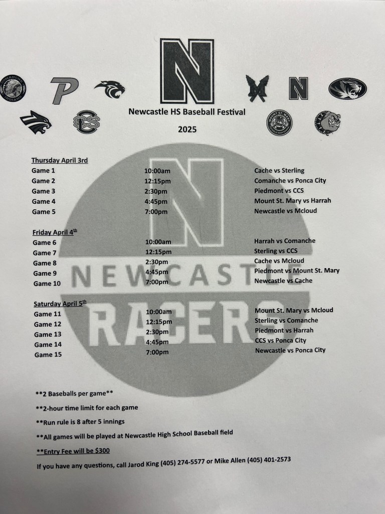 Scheduled to wrap up the tournament on Saturday night, Newcastle will face a team that seems to be better than their record. The Wildcats play a brutal schedule in 6A and outside of their games with Owasso and Stillwater, they’ve held their own. Ponca City has a win over the 2024 6A State Runner Up, Sand Springs, and 3A state tournament contender, Holland Hall.