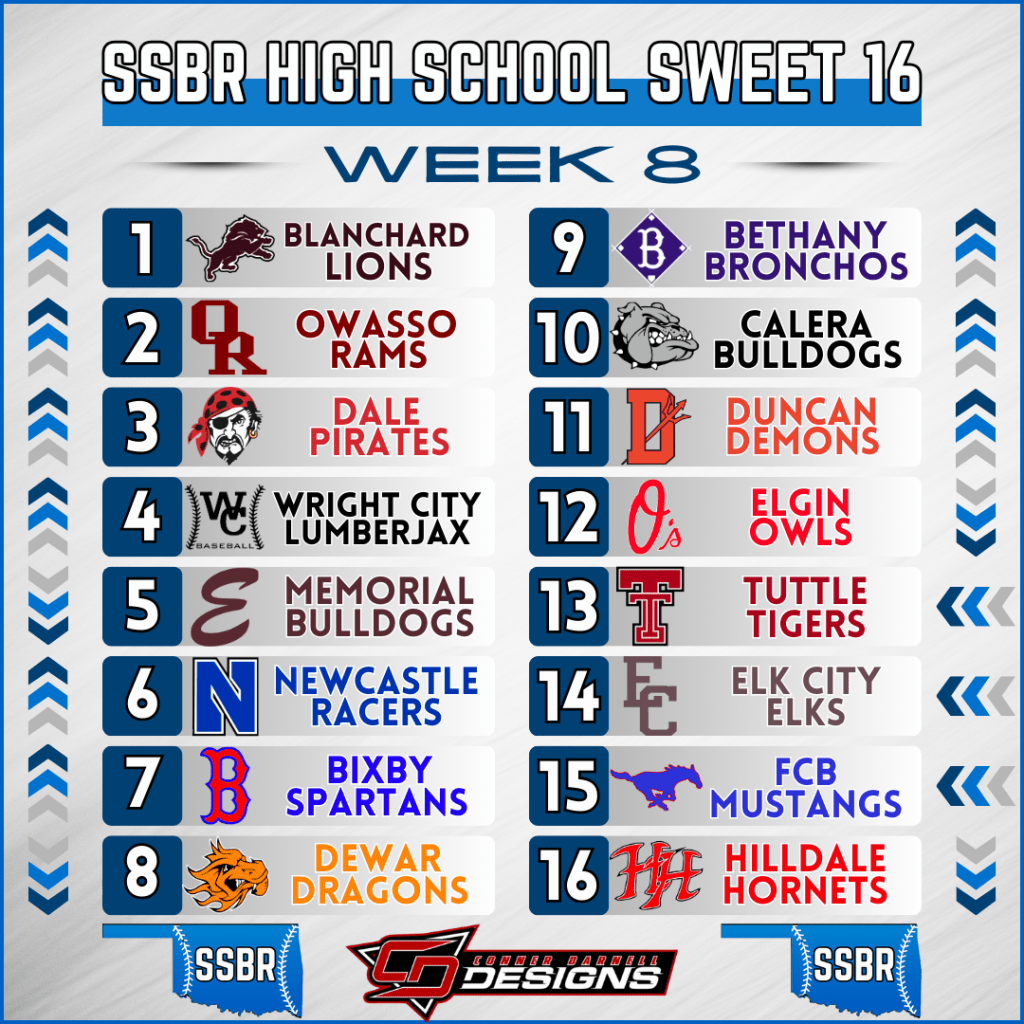 Bixby (6A, 26-6) moves up to #7 this week. The Spartans went 3-0 this past week and they play Stillwater in a district series this week with the District 6A-4 title on the line.