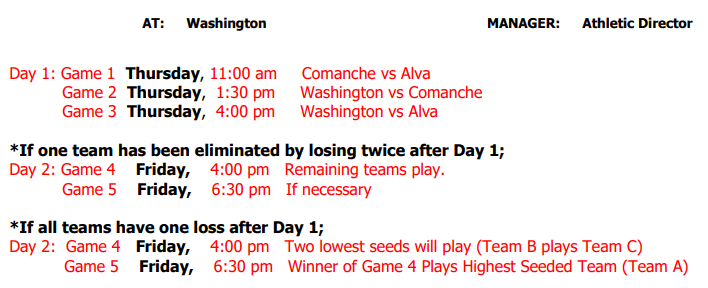 It is important to note that 4A and 3A have a different format than the other classes. The winners of each regional will move on to Areas the following week. The coaches of each regional winner will rank the remaining 16 teams. They will then play a best of 3 series: