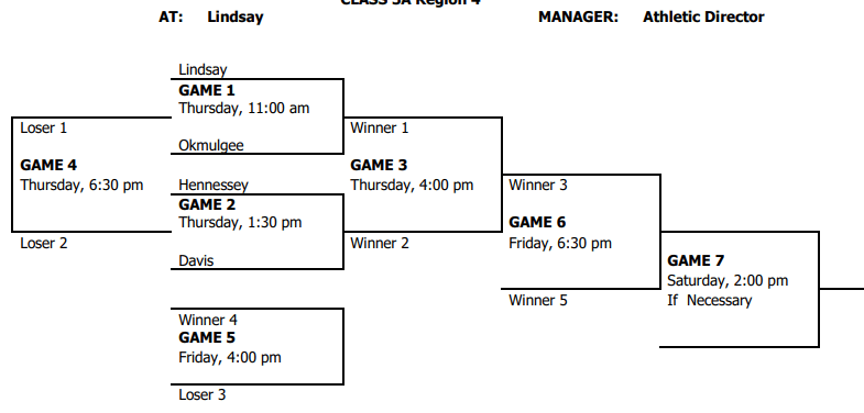 The OSSAA released the brackets for the Class 4A and Class 3A Regionals to be played this week. This is the first step in the postseason process for these classes.
