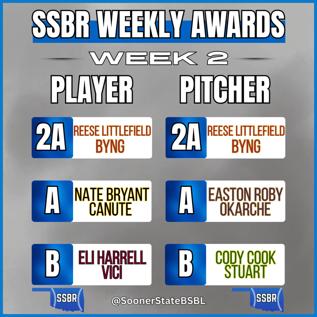Reese Littlefield may be the first one to win both the Player and Pitcher of the Week awards in the same week, but Roby is the first to win 2 Pitcher of the Week awards this season. The fact it is in both weeks 1 and 2 make it even more impressive.