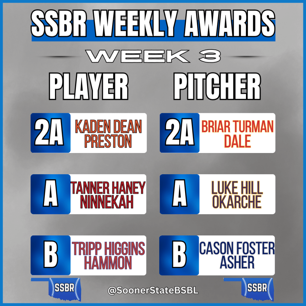 It may not be the same pitcher it was the first 2 weeks (Easton Roby), the Pitcher of the Week will stay with Okarche.
