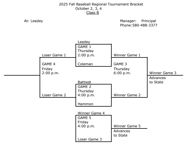 If the seeds hold, the top four seeds in the state tournament will be FCB and Leedey on one side while Calumet and Stuart would be on the other.