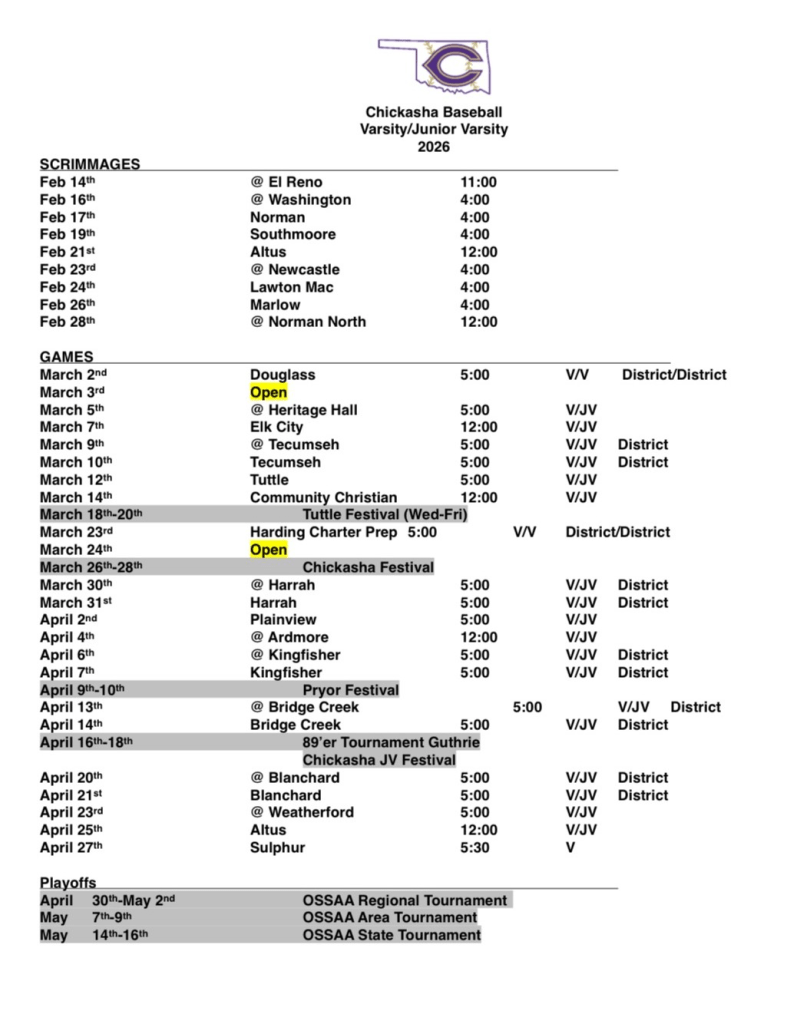 The calendar has turned to the a new year and that means the OSSAA high school baseball season will be here soon. Classes A1, A2, and B officially get started February 23 while the rest of the classes begin March 2.