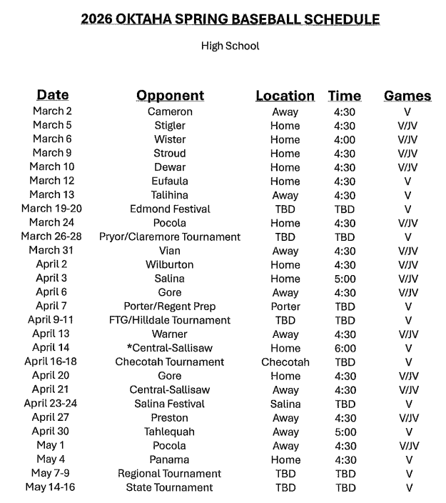 The calendar has turned to the a new year and that means the OSSAA high school baseball season will be here soon. Classes A1, A2, and B officially get started February 23 while the rest of the classes begin March 2.