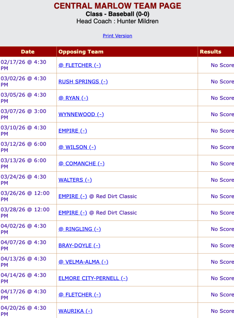 Today’s team: Central (Marlow) Bronchos