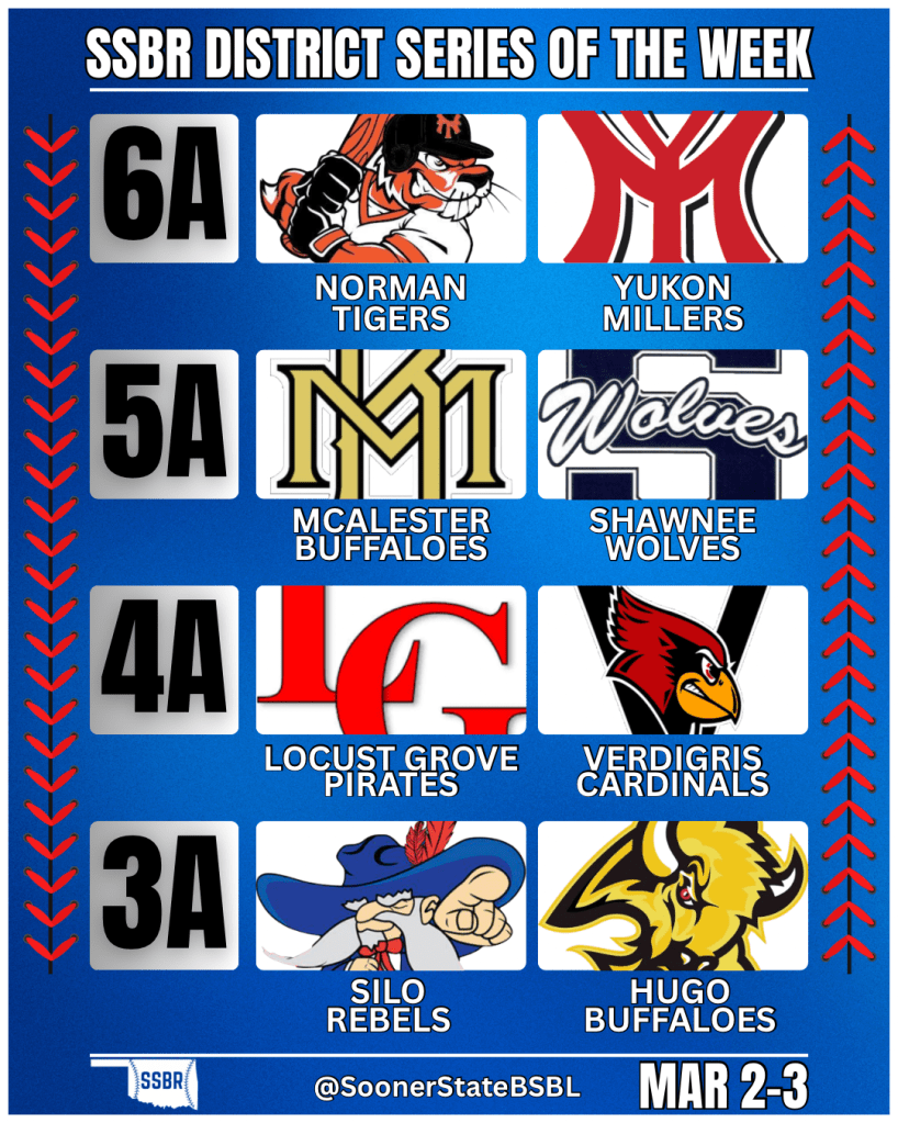 Several teams, however, have decided to delay the start of District play so there were not as many series to choose from. However, we think we have found the best matchups in each class for the week.