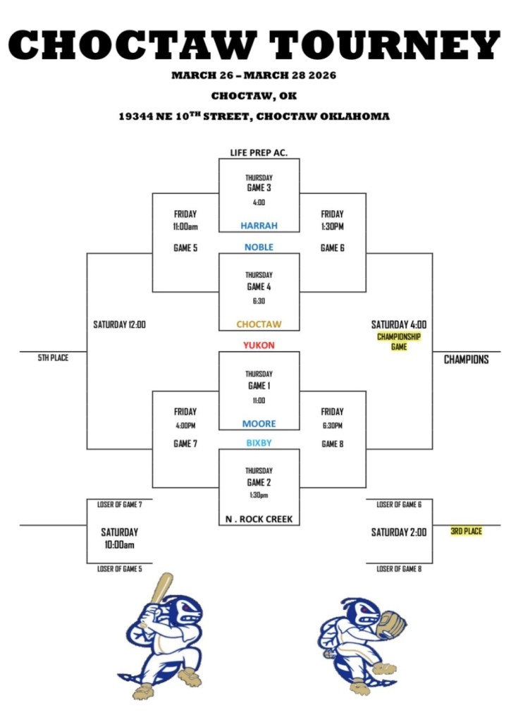 The tournament is a traditional 8 team bracket with each team guaranteed 3 games. There are teams from Classes 6A, 5A, and 4A along with our friends from Life Prep in Wichita.